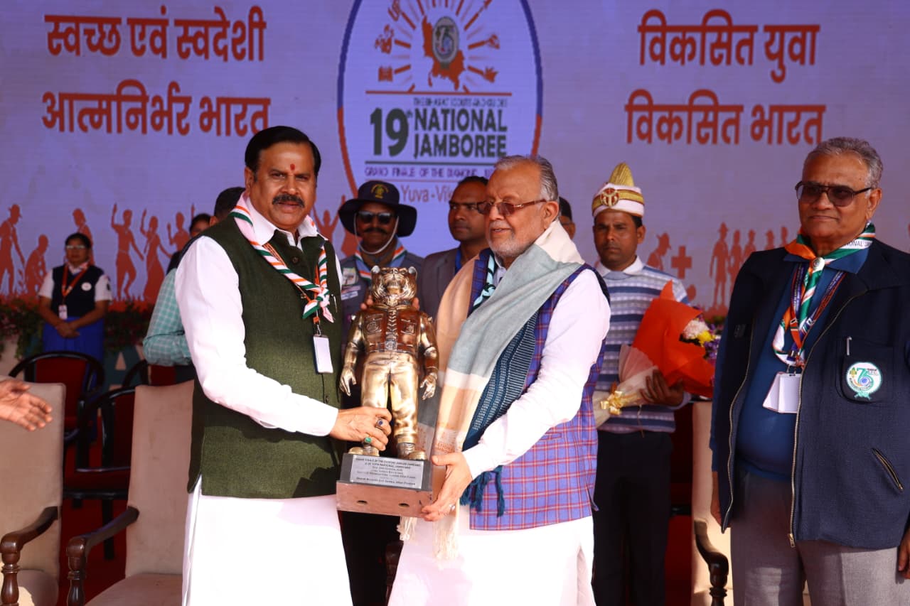 समापन अवसर पर मंत्री श्री सुरेश खन्ना को 19वीं राष्ट्रीय जम्बूरी का पवित्र शुभंकर “शार्दू” सम्मानस्वरूप भेंट किया गया।