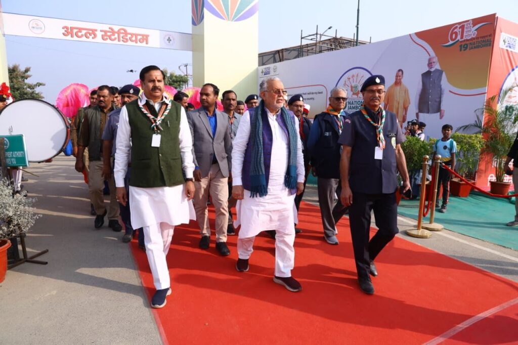लखनऊ : 19वीं राष्ट्रीय जम्बूरी के मुख्य मंच पर मंगलवार को उत्तर प्रदेश सरकार के वित्त एवं संसदीय कार्य मंत्री श्री सुरेश खन्ना ने पेजेंट शो का भव्य उद्घाटन किया। मंत्री के आगमन पर स्काउट–गाइड के बच्चों ने पारंपरिक स्काउट सलामी, ध्वज सम्मान और गाइड क्लैप के साथ उनका अनुशासित एवं उत्साही स्वागत किया। स्वागत दल ने पारंपरिक पुष्प भेंट और औपचारिक एस्कॉर्ट के माध्यम से मंत्रीजी को मुख्य मंच तक पहुंचाया, जिसके बाद कार्यक्रम की शुरुआत हुई।
