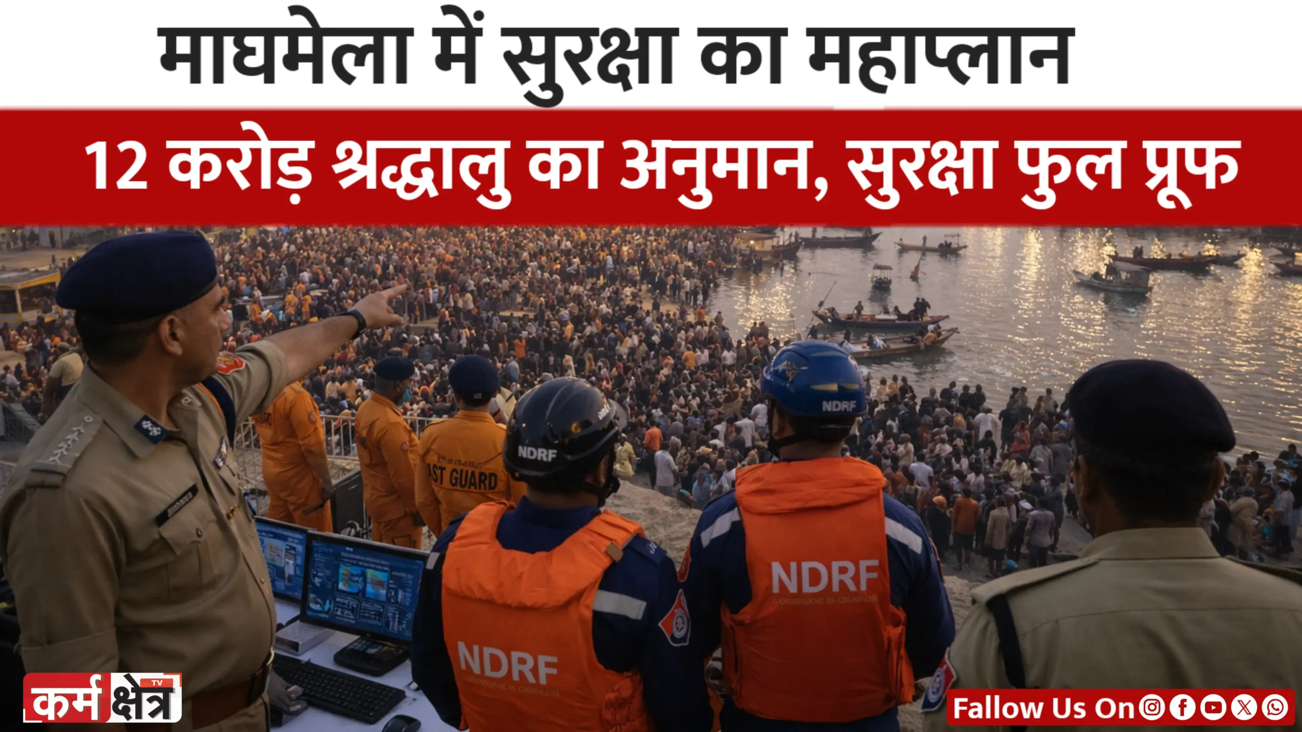 प्रयागराज के संगम तट पर 3 जनवरी से शुरू होने जा रहे माघ मेले में श्रद्धालुओं की सुरक्षा और सुव्यवस्थित भीड़ प्रबंधन प्रशासन की सर्वोच्च प्राथमिकता तय की गई है। अनुमानित 12 से 15 करोड़ श्रद्धालुओं के आगमन को देखते हुए माघ मेला प्रशासन, उत्तर प्रदेश आपदा प्रबंधन प्राधिकरण (UP Disaster Management Authority) और अन्य सहयोगी सुरक्षा एजेंसियों ने सुरक्षा एवं प्रबंधन का विस्तृत रोडमैप (Road Map) तैयार कर लिया है। अब इस कार्ययोजना को धरातल पर उतारने की प्रक्रिया चरणबद्ध रूप से शुरू की जा रही है।