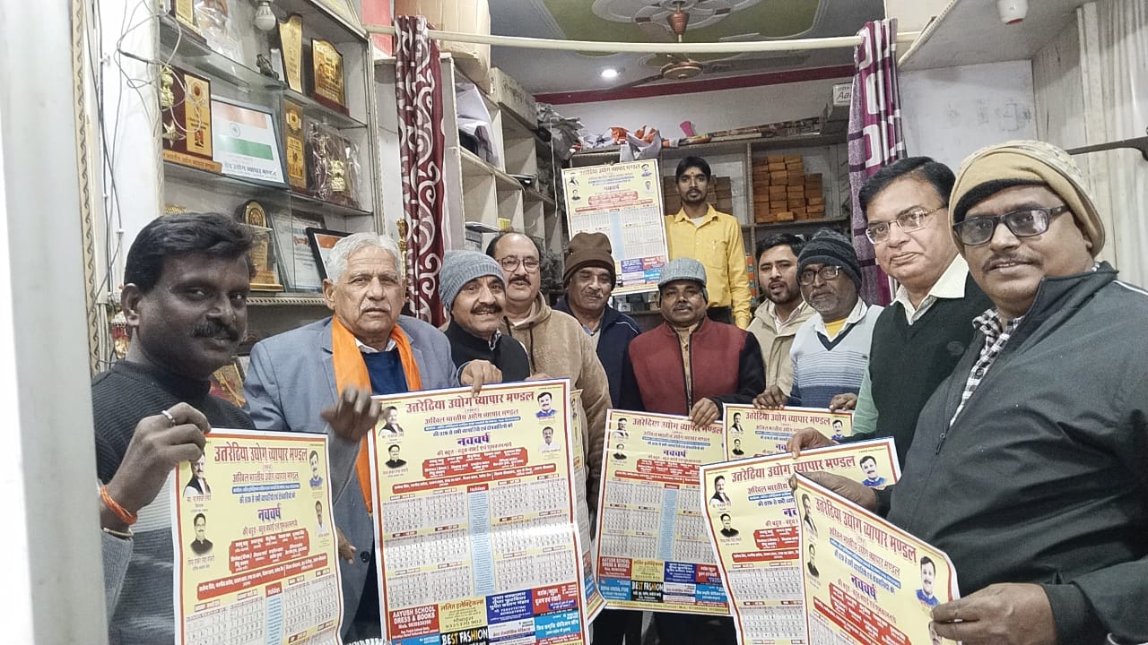 उतरेटिया व्यापार मंडल का नववर्ष 2026 स्वागत समारोह, व्यापारियों को कैलेंडर वितरित कर दी गईं शुभकामनाएं