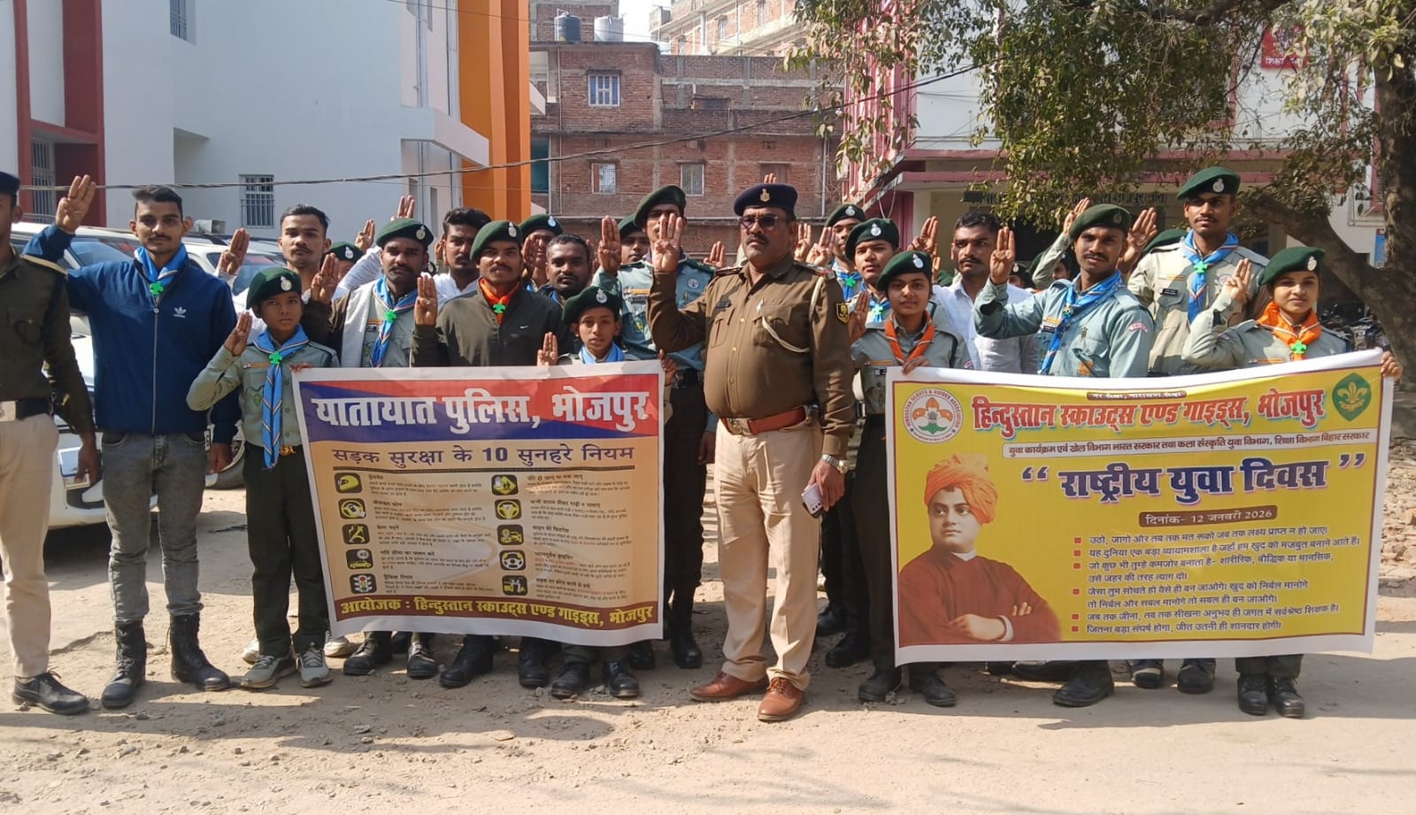राष्ट्रीय युवा दिवस एवं महान समाज सुधारक स्वामी विवेकानंद जी की जयंती के अवसर पर हिन्दुस्तान स्काउट्स एण्ड गाइड्स भोजपुर द्वारा प्रभात फेरी एवं सड़क सुरक्षा जागरूकता अभियान का भव्य आयोजन किया गया। इस अवसर पर जिले के विभिन्न विद्यालयों से चयनित हिन्दुस्तान स्काउट्स एण्ड गाइड्स के 200 से अधिक स्वयंसेवकों ने बढ़-चढ़कर हिस्सा लिया और देशभक्ति व अनुशासन की भावना के साथ आमजन को जागरूक करने का कार्य किया।