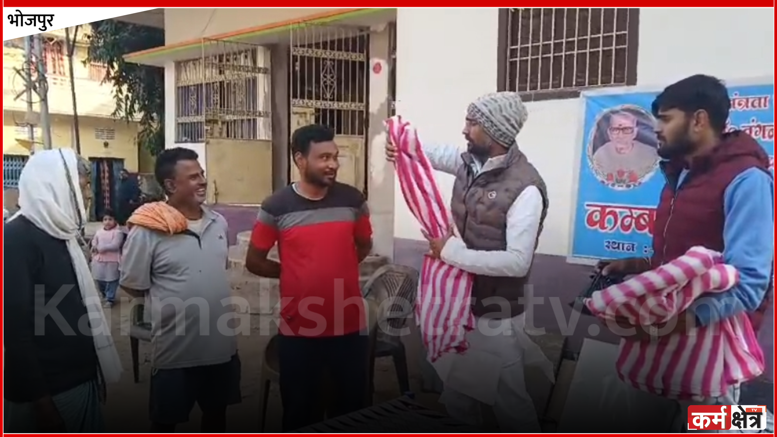 भोजपुर में मकर संक्रांति पर जरूरतमंदों को कंबल वितरण