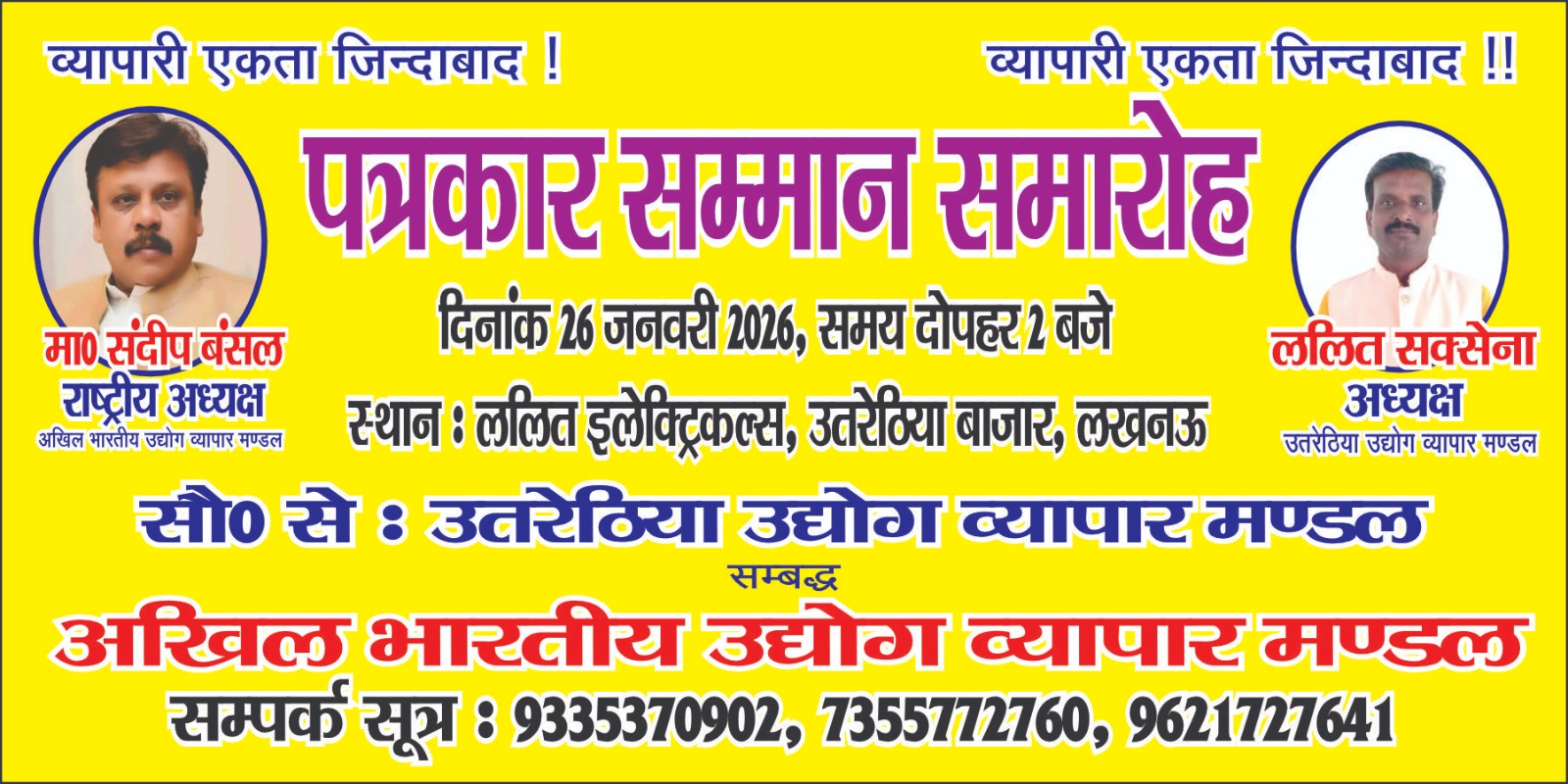 कार्यक्रम के दौरान बड़ी संख्या में व्यापारी बंधु (Traders) भी उपस्थित रहे, जिससे आयोजन और भी गरिमामय बन गया। पूरे कार्यक्रम में राष्ट्रभक्ति, सामाजिक सरोकार और सम्मान की भावना स्पष्ट रूप से देखने को मिली। उतरेटिया व्यापार मंडल द्वारा आयोजित यह कार्यक्रम न केवल गणतंत्र दिवस के महत्व को रेखांकित करता है, बल्कि मीडिया और समाज के बीच सकारात्मक संवाद को भी मजबूत करता है।