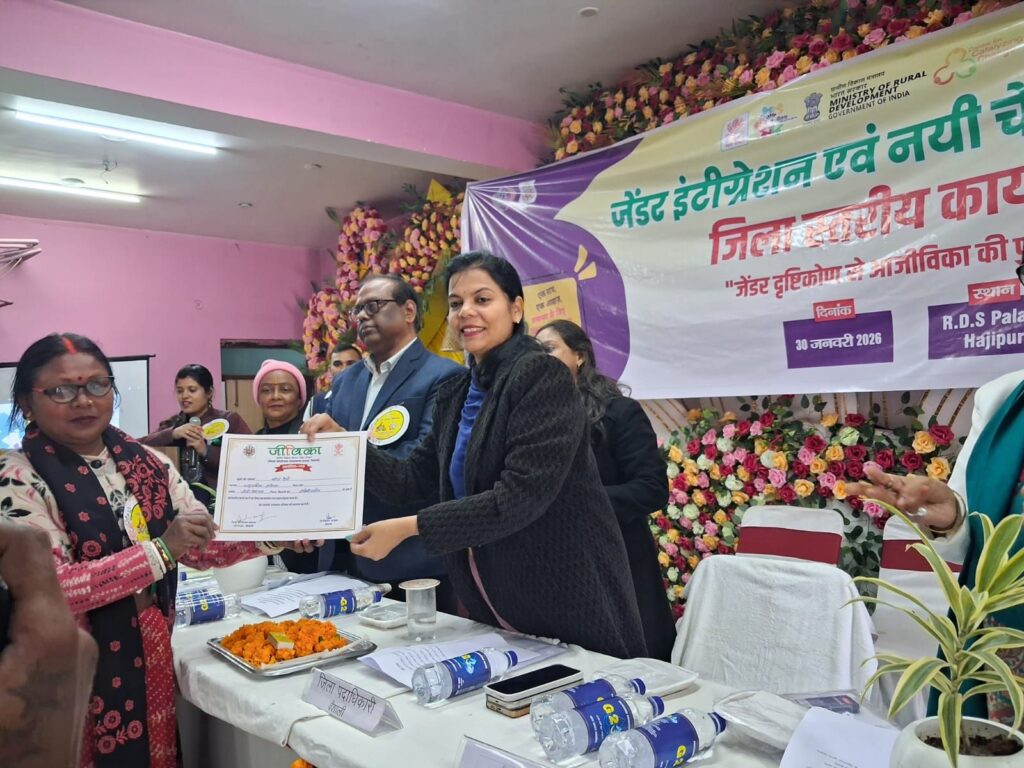 हाजीपुर : वैशाली जिले में लैंगिक समानता (Gender Equality) और आजीविका के क्षेत्र में समावेशी विकास को बढ़ावा देने के उद्देश्य से शुक्रवार को एक महत्वपूर्ण जिला स्तरीय कार्यशाला (District Level Workshop) का आयोजन किया गया। होटल आरडीएस पैलेस, हाजीपुर में आयोजित इस कार्यशाला का विषय “जेंडर इंटीग्रेशन एवं नयी चेतना 4.0 – जेंडर दृष्टिकोण से आजीविका की पुनर्कल्पना” (Gender Integration & Nayi Chetna 4.0 – Reimagining Livelihoods through Gender Lens) रहा। कार्यक्रम का आयोजन जीविका (JEEViKA) के तत्वावधान में किया गया, जिसकी अध्यक्षता जिलाधिकारी वैशाली वर्षा सिंह (District Magistrate Varsha Singh) ने की।